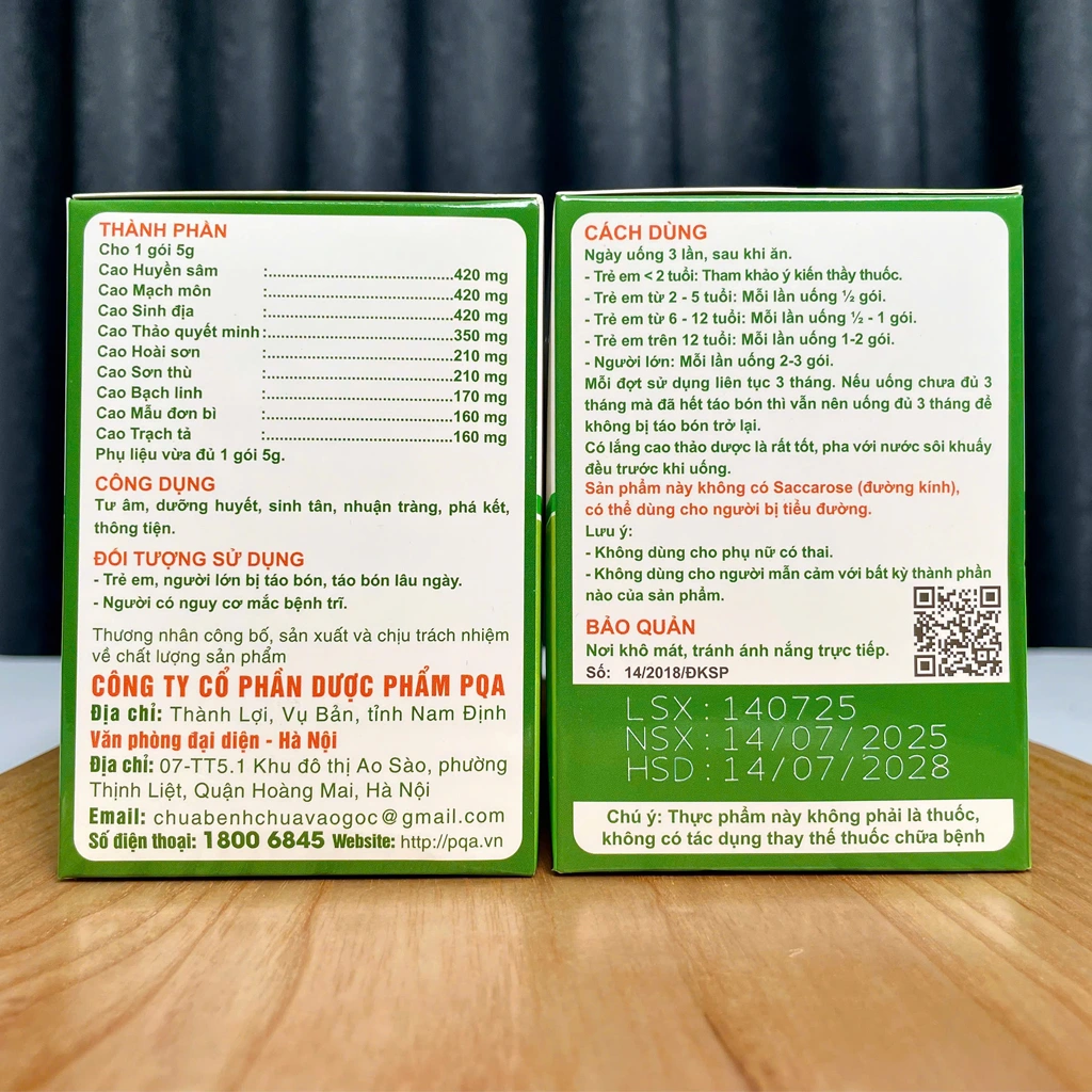 >>> Nay có thêm sản phẩm Nhuận Tràng PQA siro và Nhuận Tràng PQA cao lỏng dùng cho trẻ nhỏ và người cao huyết áp, người có bệnh tiểu đường.