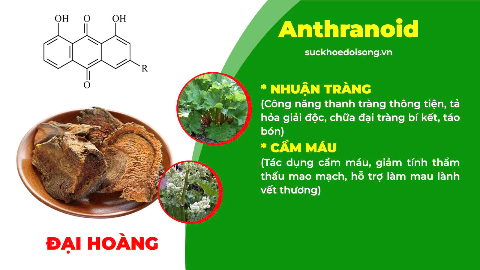 Vị Đại Hoàng có thành phần hoá học Antharanoid giúp nhuận tràng, công năng thanh tràng thông tiện, tả hoả giải độc, chữa đại tràng bí kết, táo bón