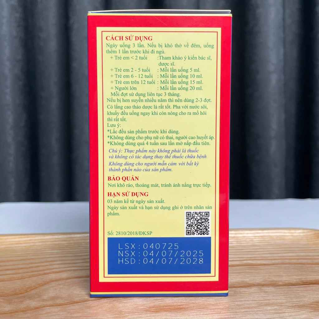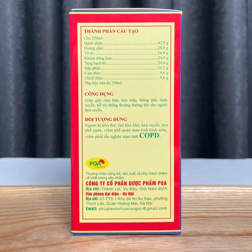 So với các bài thuốc bắc hay các bài thuốc dân gian thì việc sử dụng Hen suyễn PQA sẽ đem lại hiệu quả cao và nhanh chóng hơn rất nhiều. Bởi thành phần 1 chai siro PQA Hen suyễn 250ml đã được nghiên cứu liều lượng phù hợp. Dược liệu được tinh chế, cô đọng thành dạng siro giúp người bệnh hấp thu dễ hơn, dễ dàng thẩm thấu và phát huy công dụng.